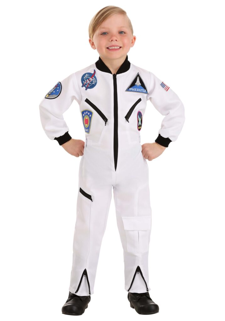 You always knew that your little one was out of this world – show everyone else by putting her in this exclusively designed White Astronaut Jumpsuit Costume for Toddlers! The white jumpsuit zips up the front for easy dressing and undressing (just because you’re on a moonwalk doesn’t mean that you can’t stop for bathroom breaks! ) It has pockets for keeping specimens safe, and lots of cool NASA and space badges to let other trick-or-treaters know that this astronaut is on official business! Slip on her trusty helmet and she’ll be ready to blast off! Apollo 37 to NASA: “Houston, hi. It’s me again. The stars are so pretty out here that I wanted to sing ‘Twinkle, Twinkle, Little Star’ to you for the ninth time. Also, Billy just realized that he put a frog in his shorts pocket before we left Earth and it’s still ok, but it escaped from him and hopped off into the Sea of Tranquility. We’re hearing really big croaks from that direction so we think the moon’s atmosphere might have made it get really big! Yay! Can we keep it?”