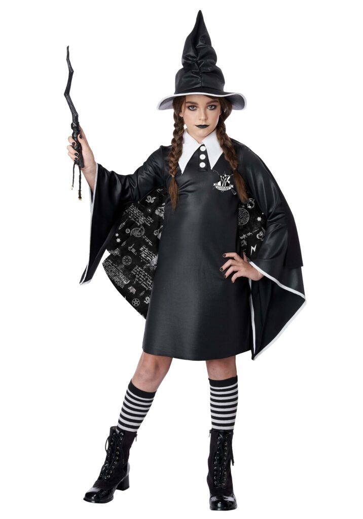 Making sure you are dressed right for any occasion is very important, which is why we recommend setting yourself up right with this Girls Witch in Training Dress Costume. The included dress is so witchy that we had to check and make sure that it did not belong to any of the witches on our staff. The cape, hat, and socks that come with this costume also are aggressively magical in their patterns and symbols. The classic, pointed witch’s hat really completes the look, but the long sleeves and awesome half-cape are also very important in the overall design of the look. The dress has a crest that says “Witchcraft Academy’, so you will be sure to be recognized as an aspirant of the arcane. You will love the way you look and feel in this cool costume! Magically Great Look.
