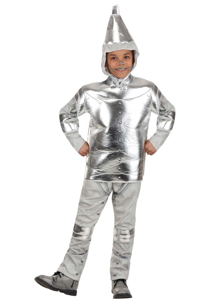 Put on this exclusive, officially licensed Wizard of Oz Tin Man Costume for Kids and skip down the Yellow Brick Road! The silver-tone jersey knit shirt features foam-backed body and elbow pads as well as a center column of padded “buttons” meant to resemble metal rivets. A silvery bowtie is attached to the center of the neckline. The matching pants are also printed with rivet and weld details, and the knees are sewn with foam pads. The hood secures under your chin and is topped with a foam-backed funnel “hat.” Emerald City or Bust Your innate kindness is so strong that nothing can prevent you from helping Dorothy to achieve her goal of finding her way back home. Which is a good thing, because you’ll have a lot of obstacles on your journey! From angry trees to fields of deadly poppies, from flying monkeys to wicked witches, there will be plenty of challenges to test your mettle (pun sort of intended). Fortunately for you and your companions, friendship conquers all!