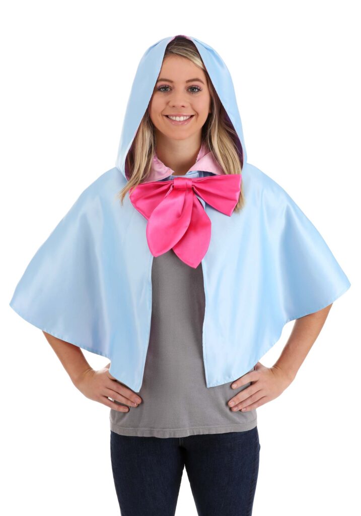 This officially licensed Disney Fairy Godmother Women’s Hooded Capelet will finish off an enchanting costume faster than you can say “Bibbidi-bobbidi-boo! ” The soft blue satin capelet drapes gently over your shoulders and closes in front with hook & loop fastener behind an oversized pink bow. The hood is lined with soft pink satin. A Total Icon With a wave of your magic wand, Cinderella will be off to the ball! She’s lucky that you’re her fairy godmother: after all, she can tell that you’ll work wonders with her ruined dress just by looking at your gorgeous cape.
