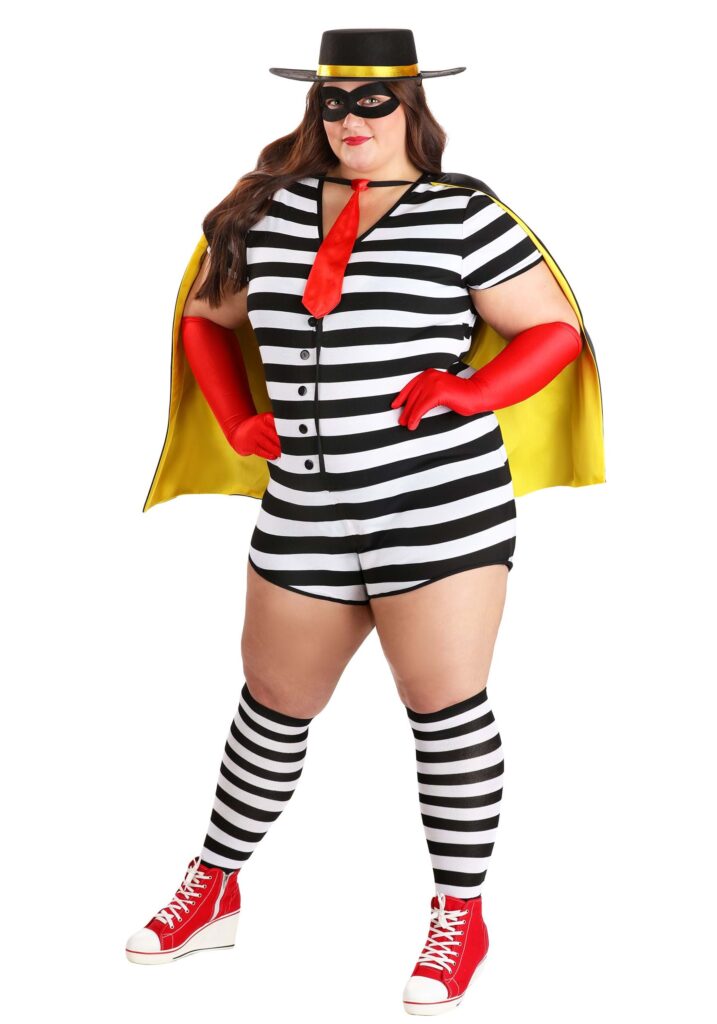 Sneaky, but Make it FashionChannel your inner snack bandit with this women’s burglar costume! Whether you’re sneaking around for candy or just making sure your friends’ fries don’t go to waste, this look brings mischief in the best way possible. The iconic black and white stripes scream “I’m here for trouble,” but the flashy red cape and tie? Total style moment.Halloween is all about letting your playful side run wild, and this costume does just that. No one can resist a good throwback, especially when it involves chasing down imaginary hamburgers or a good laugh. From haunted houses to costume contests, you’ll be able to dress up like a charming food thief and get away with it!