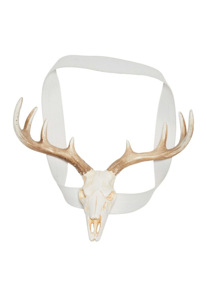 Each headpiece is designed to captivate and enchant. The aged white deer skull, detailed to reflect the haunting passage of time, contrasts starkly against the brilliant gold of the resin antlers, creating a mesmerizing juxtaposition. Fitted with durable elastic bands, the piece ensures a snug fit for most adult sizes, allowing you to don the headpiece with ease and confidence. Designed to invoke a sense of eerie elegance, its ominous aura will make you the center of attention at any gathering.Craft Your Ethereal Aura.