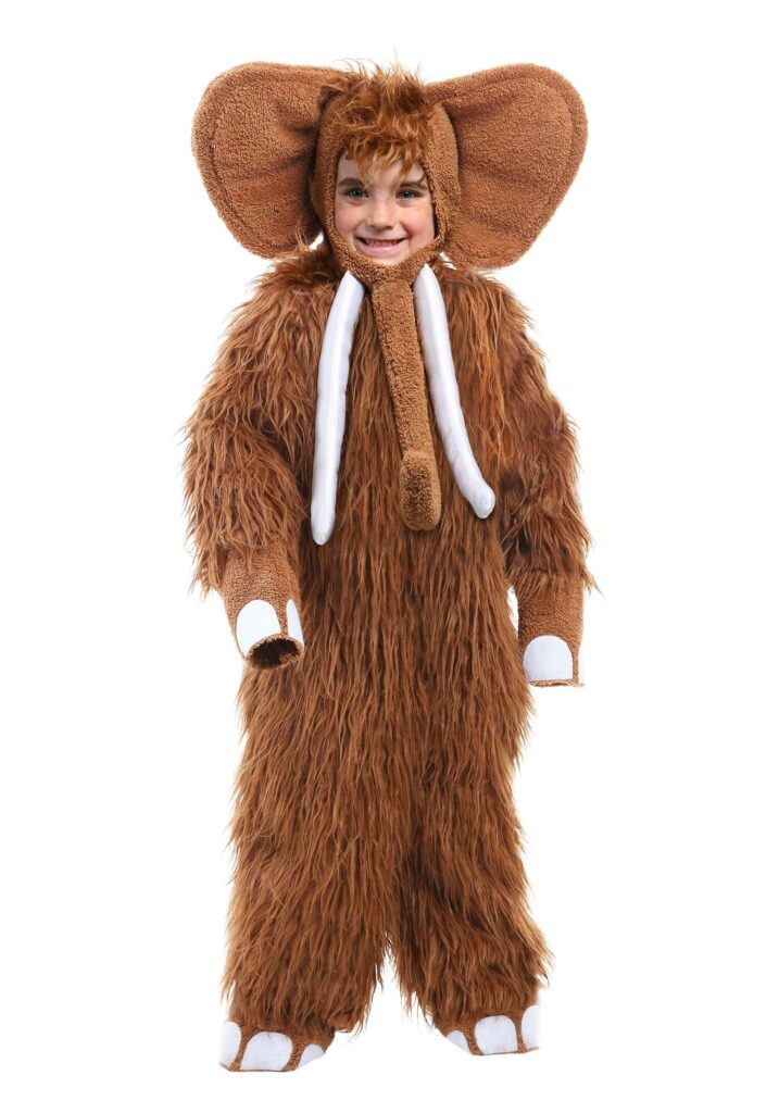 Has he always just wanted to “get woolly?” Does he love history and the extinct animals that roamed the earth of long ago? Does he just want to stomp the ground with his hooves and fight his friends with his tusks?Then, boy oh boy, do we have just the thing for him. This kid’s Woolly Mammoth costume! This unique costume is ready to let any boy or girl bring the ancient mammal back from extinction. (Un-extinct them? Is that a thing!?)This delightful costume has all the styling of the ancient animal, but it a fun polyester fur and fleece ensemble. it’s made and designed by us, right here in our HalloweenCostumes.com studio, so you can be assured that it’s not only made with top notch construction, but that it will last for many, many stompings.Styled as a jumpsuit and headpiece combination, the long pile fur and felt “toenails” over the hands and feet will turn your kiddo into a furry critter. And when they secure the over-sized headpiece, the prehistoric transformation will be complete! With huge ears, a hanging trunk and two hanging tusks, even the smallest kiddo will feel just like a massive Mammoth.You’re only going to find this exclusive costume for sale right here at HalloweenCostumes.com, so get it for your kid to make sure you’re doing your part to “un-extinct” the Woolly Mammoth!
