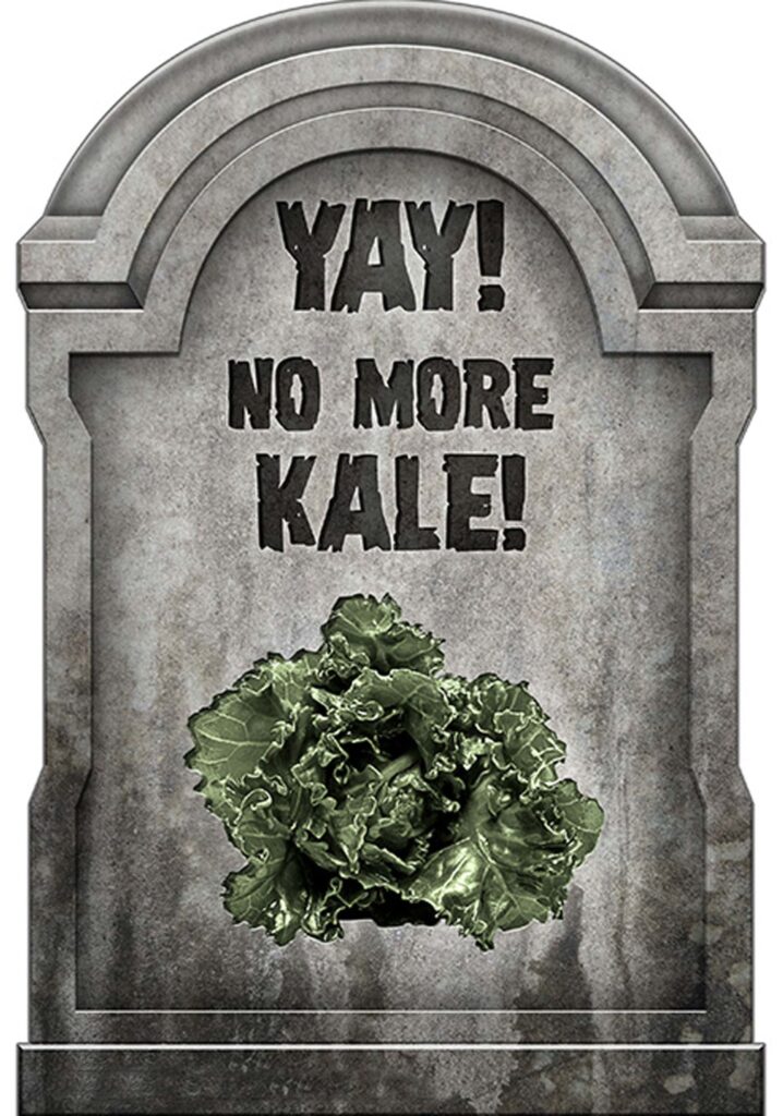 Celebrate the joys of the afterlife with this Yay! No More Kale! Tombstone Decoration! The hilarious prop is shaped like an old-fashioned tombstone and has a kale graphic on the front.