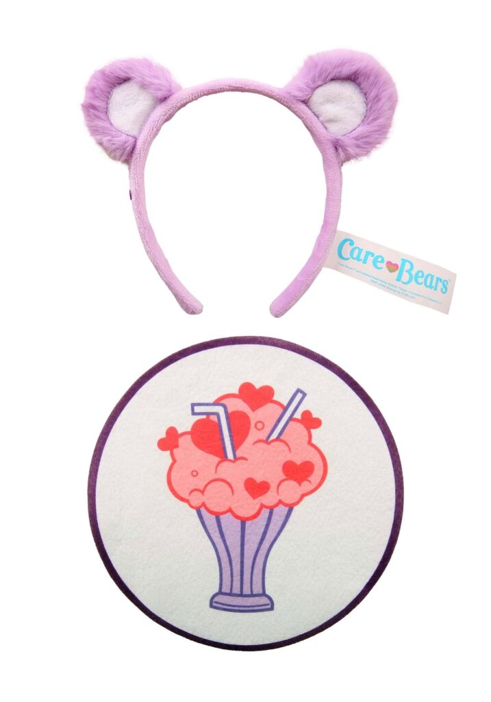 Product DetailsThe two-part kit includes the signature Share Bear belly badge of a milkshake with two straws. It can attach to any clothing item you like and makes you look instantly authentic. The furry lavender ears are affixed to a fabric-covered headband. Don a full purple sweatsuit for more of a costume look or layer them over everyday clothes for a fun Saturday around town!