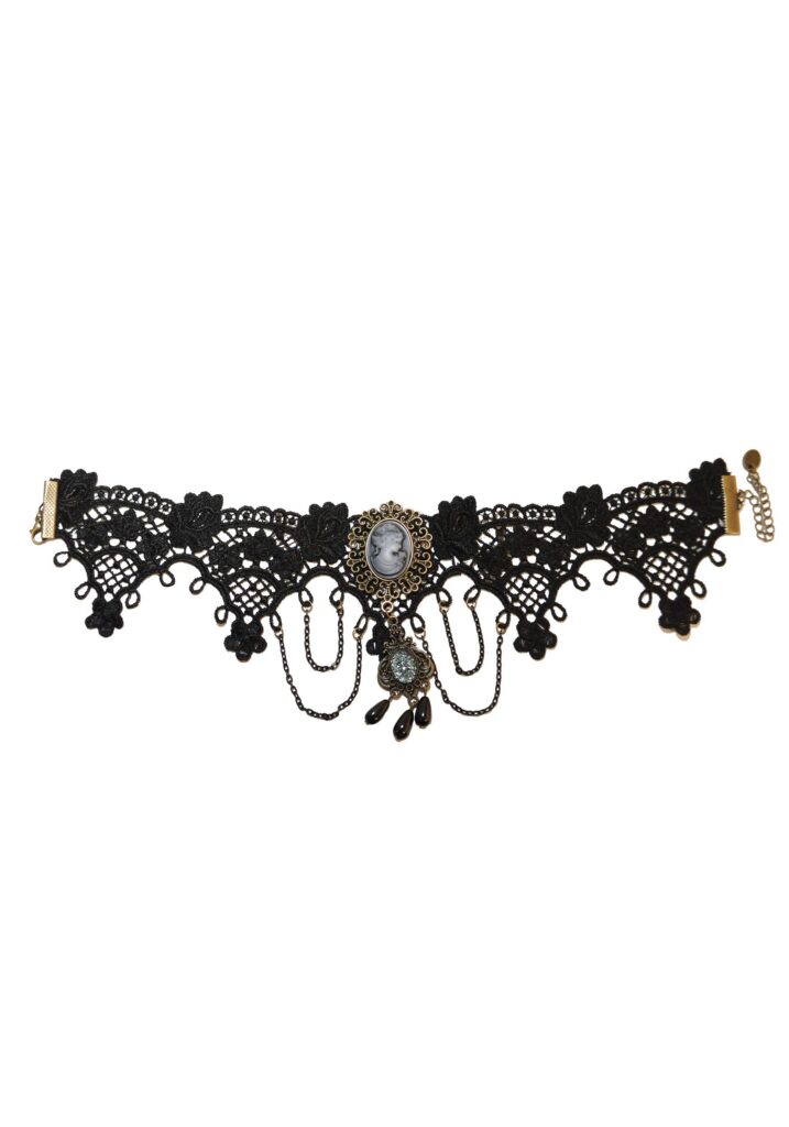 So you’ve got the outfit. A sumptuous renaissance gown? A dark gothic number? Some grubby jeans and a v-neck?Whatever your outfit, it’s not complete without the right jewelry. Of course, “right” is subjective. Right jewelry for you may mean neon beads or a candy necklace. But you can do better than that. Better than an old boring pendant. Better than a plain heart or star. You can get more elaborate. Romantic even. If you’ve put that much work into selecting an outfit, to the point where you’re now shopping for the right necklace to frame your face while highlighting your neck, well then look no further for your jewelry needs.Our Lace Choker with Cameo Pendant is perfect for any occasion. Masquerades, clandestine meets, punk parties… whatever you have planned it will be better with this little number. A black lace choker accented with a cameo and pendant will look amazing with your ensemble. Trust us. We’ve been wearing it around for weeks now.