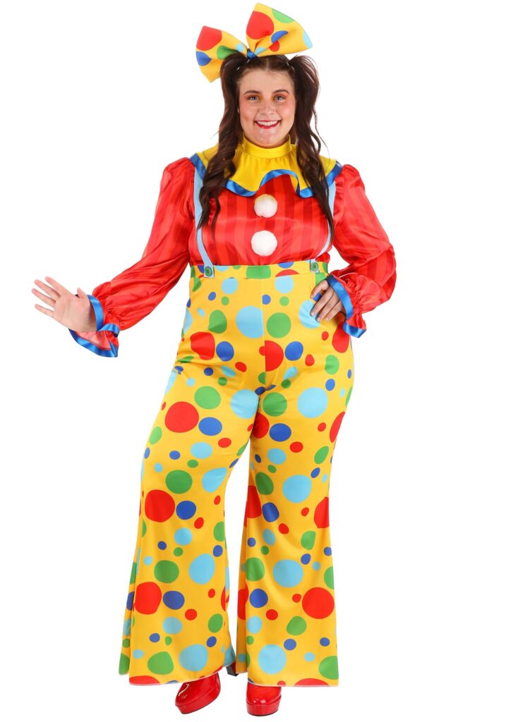 Polka-Dotted Fun Get ready to bring the fun in the Plus Size Posh Polka Dot Clown Costume! Whether you’re walking into a party or starring in a parade, this vibrant outfit will make sure you’re impossible to miss. Those bright colors and oversized polka dots? Absolutely eye-catching. It’s a throwback to the classic, beloved clowns of circus days, but with a modern twist that says, “I’m here to have a good time.” Just be prepared, when you show up in this, everyone’s expecting the laughs to start with you!There’s something timeless about a clown costume, and this one takes it to the next level. You’re not just any clown, you’re posh. With a giant bow on your head and those suspenders holding up your billowy pants, you’re making a style statement, clown-style. From entertaining the kiddos to cracking jokes with your friends, this outfit is your go-to for a night full of antics and belly laughs. And hey, who said you can’t be funny and fashionable?