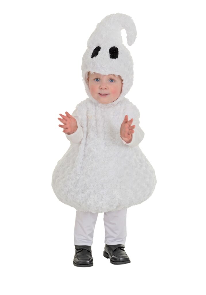 Aha! You must be the great hero whose arrival was foretold long ago. The one who’s braved the wail of the banshee, the howl of the djinn, and the screams of a thousand nameless specters? Well, you’re every bit as brave as they said you’d be, considering that you’ve handled all that and you’re still interested in this deceptively cute Toddler Ghost Costume!You know, some people with special talents keep their personal and professional lives separate. We hear stories, for example, about how a few of the funniest comedians refuse to make jokes when they’re off the clock. And we can’t blame them, because making great jokes takes a lot more work than you might think! But a true hero never takes a moment off. They’re always thinking about how to help others. That’s why we think it’s pretty noble of you to risk a few shrieks so that everyone in your neighborhood can see an adorable Toddler Ghost this Halloween!It might not save any lives, per se, but we’re sure that this spooky outfit will raise everyone’s spirits. And since your task should be no more difficult than absolutely necessary, this costume is designed to aid you with its pullover design and convenient hook & loop fasteners on the back of the tunic and under your child’s chin. We regret that we cannot assist you any further in your quest, other tiny costumes are crying out for our immediate attention. And you’re the real hero, anyhow!