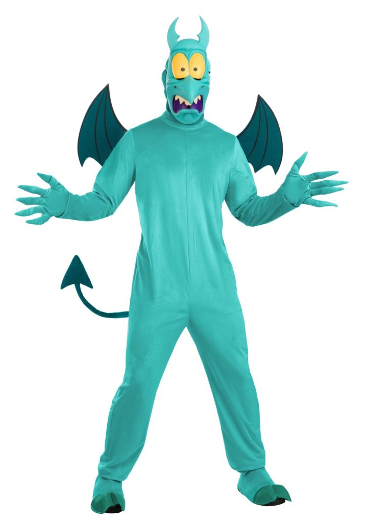 Design & DetailsStep into the style of Disney’s spirited underling with this complete Made By Us ensemble! The vivid velour jumpsuit features structured felt wings and a wavy stuffed tail stitched at the back. The knit cowl hood ensures a seamless fit, staying hidden under the jumpsuit neckline. Foam-backed foot covers with faux leather hooves keep your steps true to character, while matching clawed gloves add an extra touch of nerve-rattling charm.©Disney