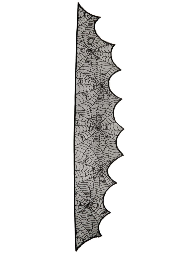 Product DetailsEven if you don’t love spiders, you’re going to love the seasonally spectacular flair that this exclusive Webs Gone Wild Mantel Halloween Scarf Decoration will give to your home! Made of black polyester machine lace, the scarf features knitted-in images of spiderwebs and a reverse-scalloped edge. Spider Sense Do you know that sensation you get when your leg itches and your subconscious is immediately convinced that a spider is crawling up your calf? This fun web won’t give you that sensation. Instead, it’ll give you the entirely accurate feeling that you’re about to have an incredible Halloween!