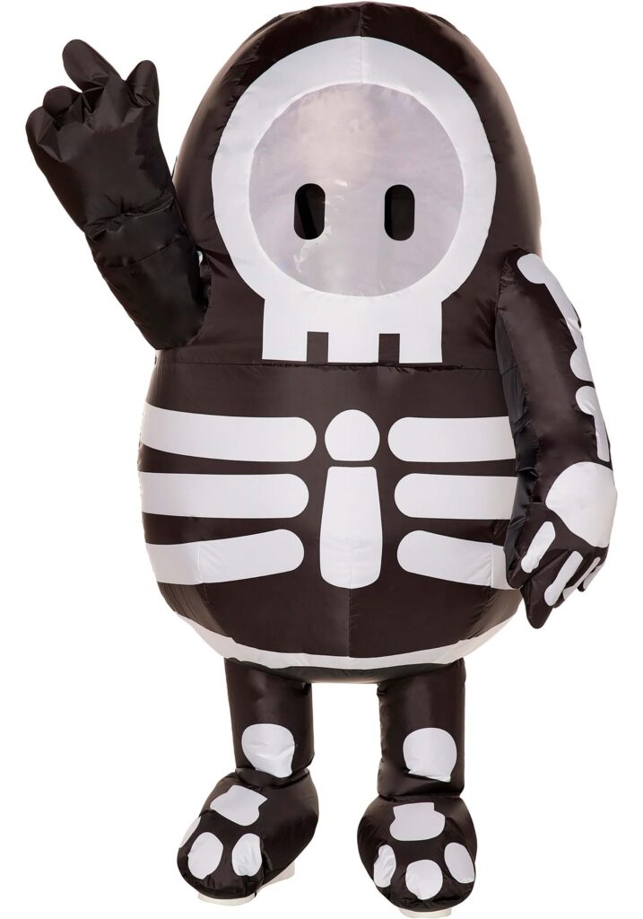 Big Bones, Bigger LaughsGet ready for maximum Halloween hilarity with this Inflatable Fall Guys Skeleton Costume for Kids! This costume takes “blowing up” on Halloween to a whole new level. This inflatable jumpsuit lets your kid embody that adorably clumsy, slightly spooky Fall Guy in all its round, waddling glory. Whether they’re bouncing around the neighborhood or competing for candy, this inflatable look is sure to win smiles and laughs!There’s nothing spooky here, just big, bouncy fun right out of the beloved Fall Guys game! Perfect for trick-or-treating, costume contests, or just goofing around, this inflatable jumpsuit guarantees the biggest laughs on Halloween night!