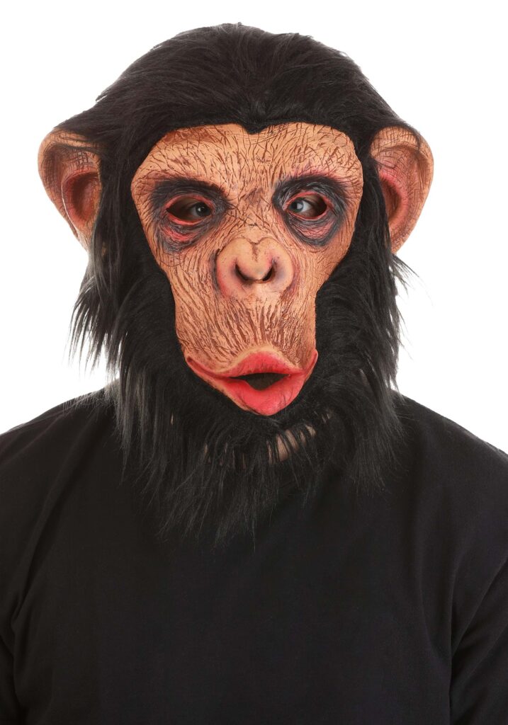 Product DetailsMonkey around to your heart’s content when you wear this exclusive Realistic Chimpanzee Costume Mask for Adults! The molded mask conceals your entire head and is shaped and painted with chimpanzee facial features. The top, back, sides, and chin area are all decorated with black faux fur. Eye holes allow you to (sort of) see where you’re going. Prankish Primate Is that a zoo escapee, or is it someone in an incredibly realistic mask? It’ll be hard to find out, since everyone’s behavior is a little more monkey-like at a party. Our only suggestion is to watch to see whether they bypass all the other food in favor of banana-flavored candy.