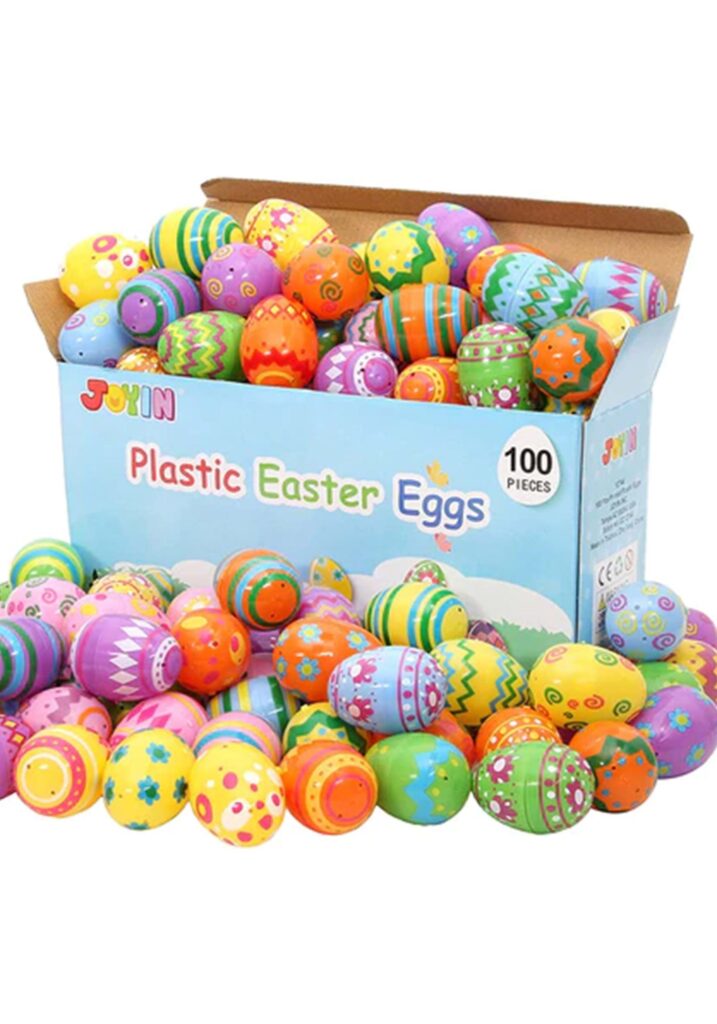Product DetailsCelebrate Easter with a set of 2.4″ Printed Plastic Egg Shells! The one hundred piece pack contains plastic eggs in all shades of the rainbow. Each one is beautifully embellished with printed flowers, stripes and polka dots. Fill them with treats and hide them, or use them for decoration!